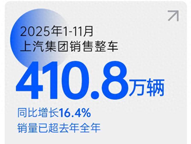 今天上汽集团发布销量数据,1-11月销售整车410.8万辆,同比增长16.4%,销量已超去年全年。其中,上汽自主品牌销售266.6万辆,同比增长25.7%;新能源车销售149.9万辆,同比增长38.8%;海外市场销售96.9万辆,同比增长3.4%。预计在自主品牌、新能源、海外市场“新三驾马车”的积极拉动下,全年整体销量有望实现较快增长。